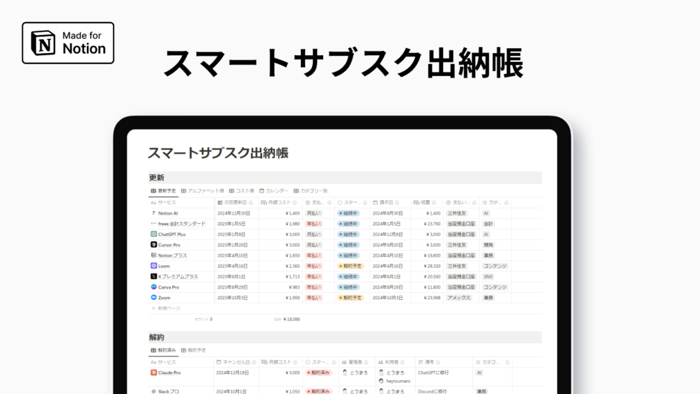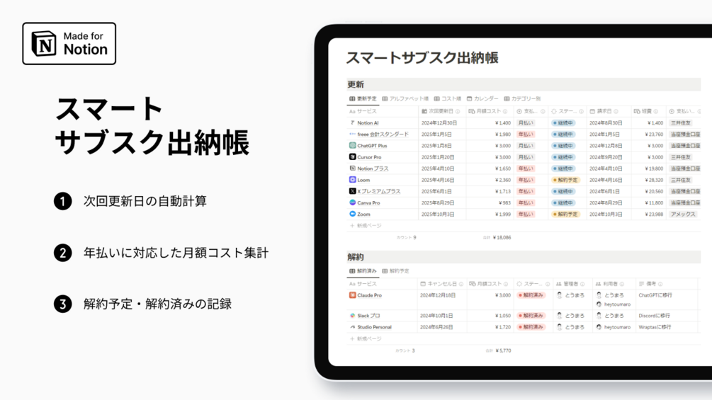 会社の業務ツールや個人のサブスク管理で使えばでコスト削減に役立ちます。